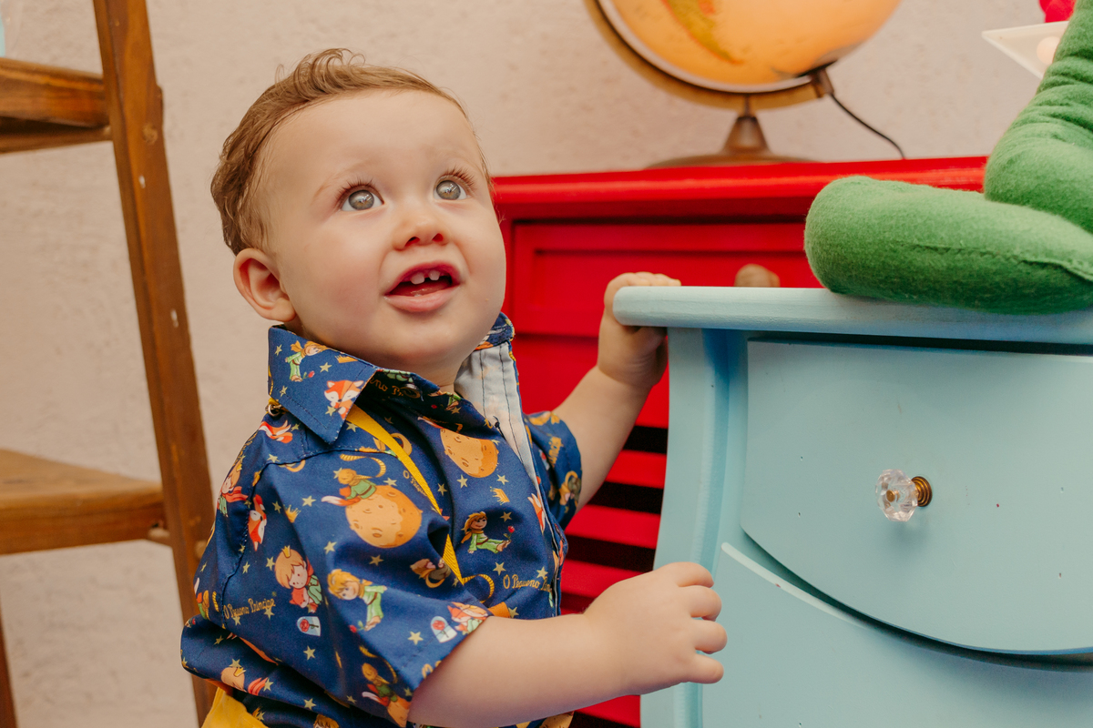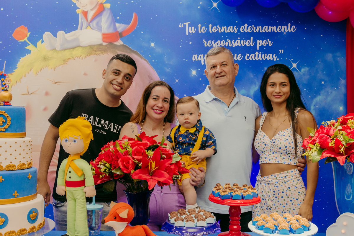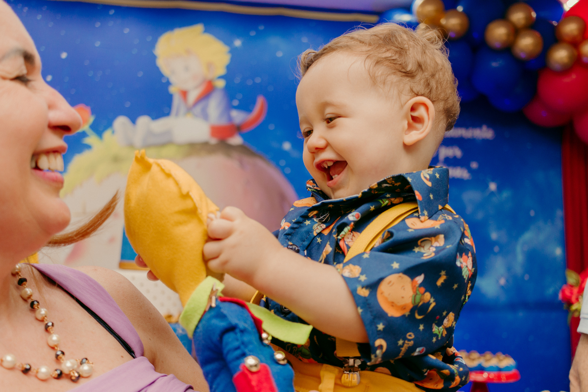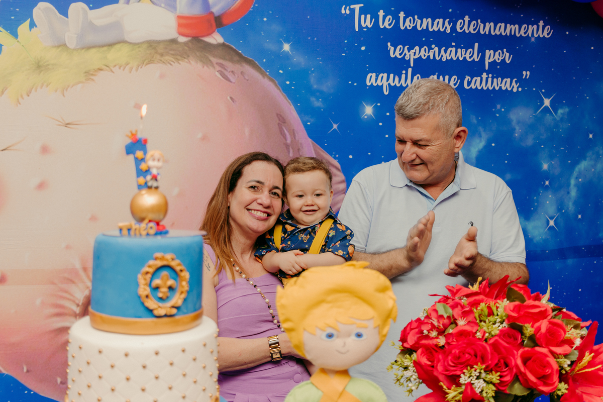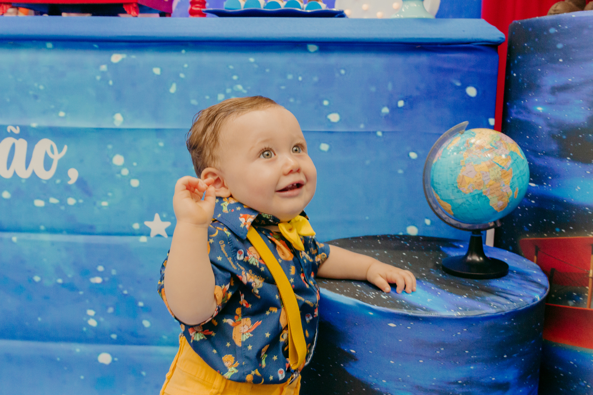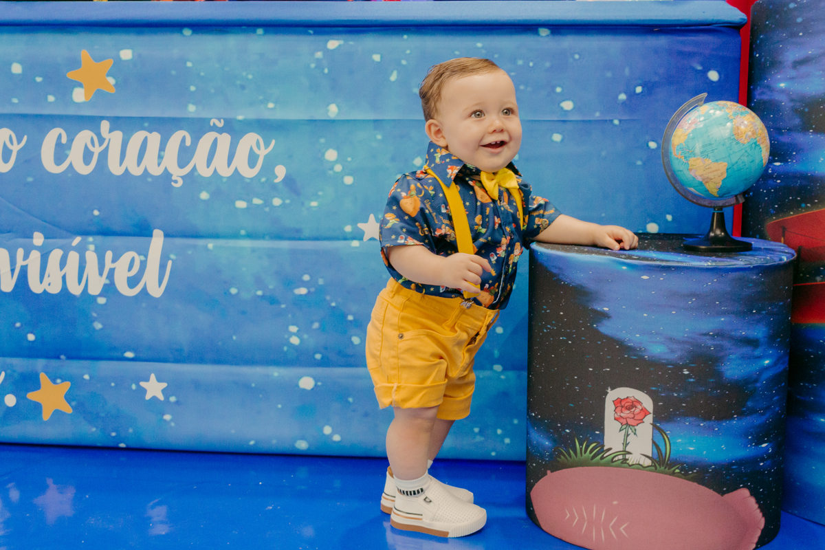 Teve o tema de pequeno príncipe e vamos combinar que foi a carinha dele, né?